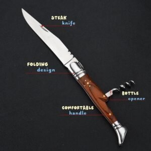 This multifunctional knife is a must-have for formal occasions, family gatherings, or outdoor barbecues. Whether you’re enjoying a fine steak, uncorking a bottle of wine, or presenting it as a special gift, this knife brings both style and function to your table.